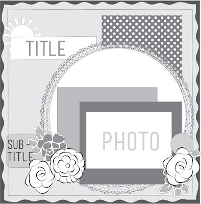 This is the page I made for the MCS June Sketch Challenge. I used the Girl Land paper. I've had this collection paper from Webster's Pages in my stash for a while and I wanted to use it. I had to make changes in the sketch a little bit because of the photo (I mirrored the sketch so everything is on the opposite side). I also put one of the flower clusters at the top of the photo instead at the bottom. Here's the sketch: